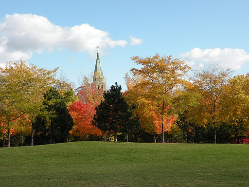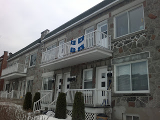 Обратили внимание, на то, что район оочень зеленый, а на многих балконах висят не канадские, а квебекские синие флаги- яркое доказательство франкофонности.