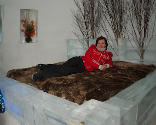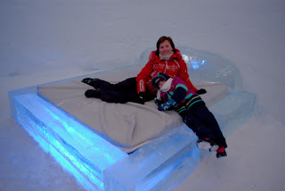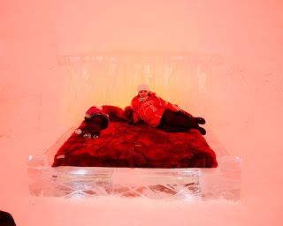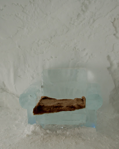 Кровати сделаны полностью изо льда, а на деревянную основу положен матрас и покрывало: искусственный мех.