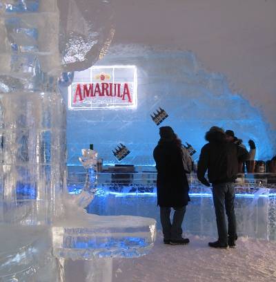 Когда совсем начинаешь замерзать , можно согреться ароматным кофе или чаем, или рюмочкой AMARULLA в ледяном баре.