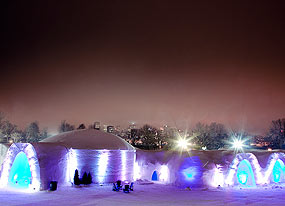 Вдохновленные опытом Финляндии, в Монреале построили уникальную снежную деревню, которая состоит из отеля, ресторана, лабиринтов, комнат для переговоров, часовни и даже сауны под открытым небом.