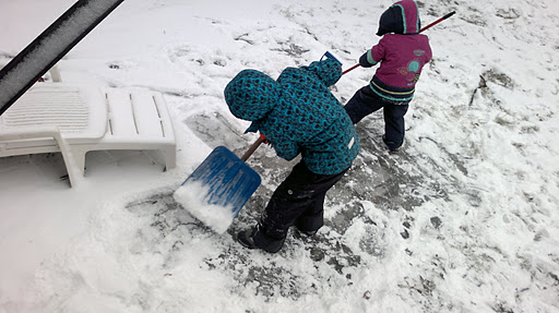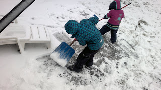 Пока мама занята делами дома, детки провели на улице почти 40 мин! Да еще и маме помогли расчистить дорожки к дому.