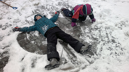 И весело и полезно! А на заднем дворе под снегом обнаружился каток. Вот тут уж веселью не было границ