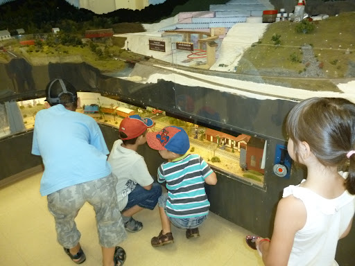 В отдельном зале были представлены модели различных железных дорог, поездов и ландшафтов. При нажатии кнопки все то приводилось в действие и дети заворожено смотрели.
