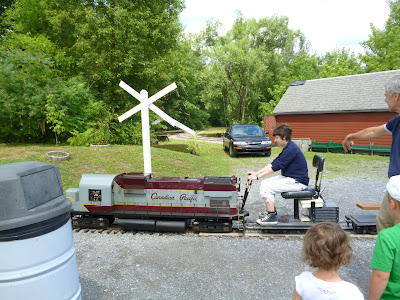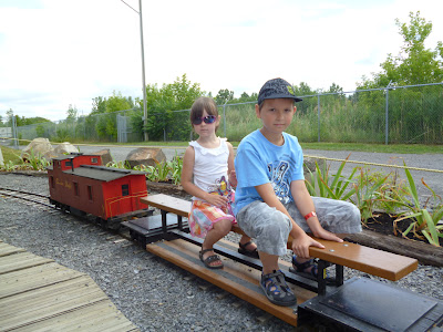 Он привез нас на еще более умилительное развлечение:  катание на мини-железной дороге. Крепко взявшись на скамейку, мы лихо проезжали по мини-мостам, мини-развязкам, мини-тоннелям. А в одном месте из поливального шланга была организована «засада» в виде фонтана прямо на проезжающий паровозик с нами, что вызвало бурю визгов и удовольствия детворы.