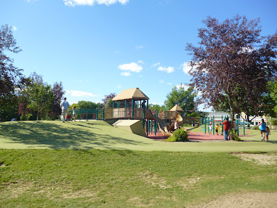 В эти выходные нам захотелось наконец-то выехать за пределы нашего бэкъярда. Как-то ни шашлыков, ни бассейна душа уже не желала, да и погодка для прогулок на свежем воздухе стояла просто великолепная — плюс 25 градусов, дул освежающий речной ветерок. Но «экстремалы» мы известные, поэтому одним из основных пожеланий в выборе места- это его близость к дому. Марат предложил посетить один из Лавальских парков, и, прыгнув в машину, очень скоро мы оказались на месте.Начало истории у парка не такое давнее- он был основан в 1984 году. И тем интереснее было рассматривать аллею фотографий как было «ДО» и как стало «ПОСЛЕ». В парке было очень много семей с детьми, в принципе, это основные посетители, но места и воздуха хватало всем.