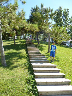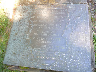 Аллеи разбиты таким образом, что по ним очень приятно просто гулять. И не смотря на то, что тропинки то поднимаются, то опускаются, от перепада высот совершенно не устаешь.А надпись на плите выполнена на нескольких языках, в том числе и на русском (правда, с ошибкой)