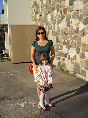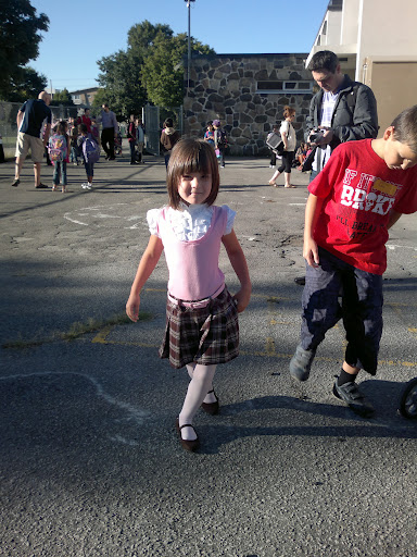 На радостях, когда нам в понедельник позвонила учительница из школы, и оказалось, что она бывшая наша соотечественница, я пропустила мимо ушей, что 29 августа полный учебный день, просто не у всего класса сразу. Я приехала в 11-30 за Каринкой, а оказалось, что это просто перерыв на обед, а не конец учебного дня. Мы полетели домой обедать, ведь вернуться в школу необходимо было к 13-02.