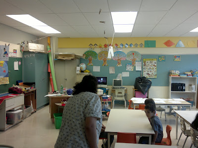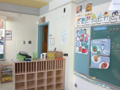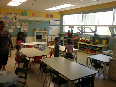 Ее рабочий день, как и учебный день Каринки, будет начинаться в 8-53. А с 8-05 (время, когда автобус привозит деток в школу) до 8-53, Каринка будет в cervice de garde, т.е. типа продленки по нашему- небольшом классе с игрушками, фломастерами под присмотром дежурного учителя.