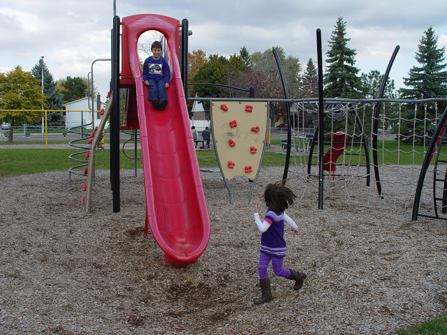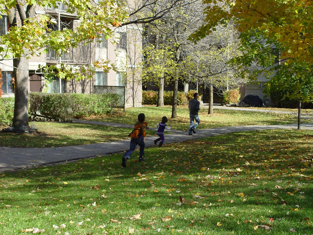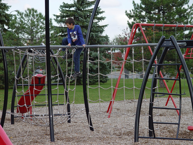 В Монреале проходил парад монстров а-ля Хеллоуин, но как-то ни меня, а особенно впечатлительного Артура идея смотреть их страшные костюмы и морды не вдохновила. Поэтому пока погода еще стояла просто отличная, мы решили поехать на детскую площадку неподалеку. Дима, Марина и Владик нас поддержали.