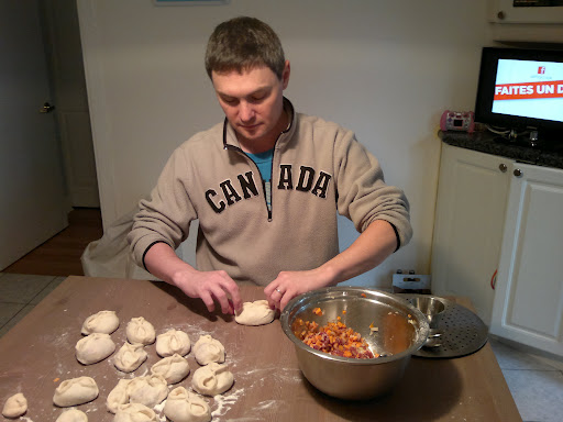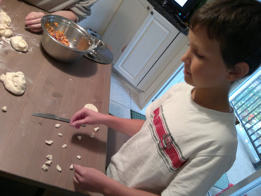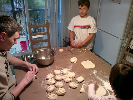 Тесто и фарш я сделала сама, а лепить манты я позвала помощников. Как и ожидалось,