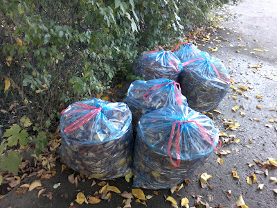 А пока реальность такова, что за окном три дня пасмурно, а листья бессовестно опадают с деревьев у нашего забора, на заднем дворе и за его пределами. Выбора все равно нет- грабли в руки и за работу! Как раз после обеда погода стала налаживаться прямо на глазах, выглянуло солнышко и была дана команда- все на свежий воздух!