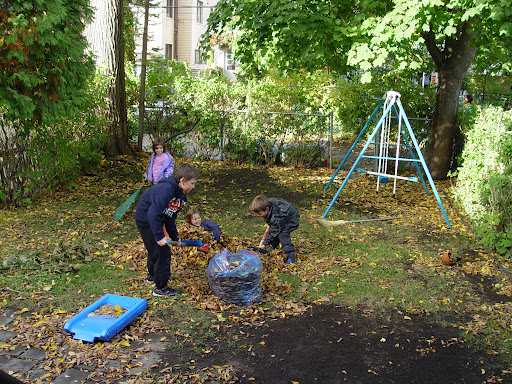 Детвора сначала ныла от перспектив субботника, но на деле все оказалось проще и веселее. Одновременно с нами наводили порядок и наши соседи, а потом ребетня запуталась: где чей двор, где чьи листья, и с шумом и гамом убирала все попадающее в поле зрения.