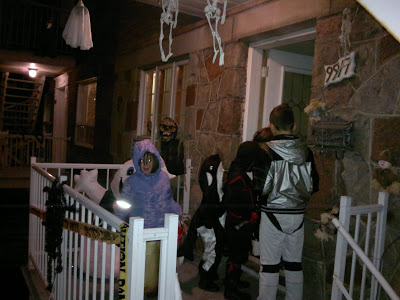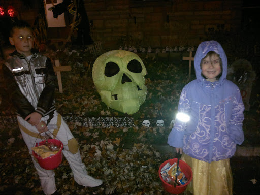Нарядив детей в костюмы, нацепив резиновые сапоги, мы отправились в наш первый крестовый поход за сладостями. Поскольку мы сначала не знали что и как делать, то «вышли на тропу» вместе с нашими соседями-квебекуа. Практика показала, что детям для ориентировки на местности хватило буквально пару минут и уже с каждым новым домом количество конфет в ведерках-тыквах стремительно увеличивалось да так быстро, что Марату пришлось зайти в супермаркет и купить пару дополнительных пакетов, чтобы дети ссыпали в них сладости сладости и мчались за новыми.
