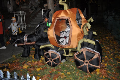 Свою прогулку мы начали где-то в 18-10, в 19-36 мы уже были дома. Я тоже вошла во вкус, хотела проехаться в район, где находится моя школа французского языка, т.к. там вокруг более респектабельные дома и очень интересно украшены. И дело не в конфетах, ведь даже того, что мы уже набрали к тому моменту, хватит детям надолго при условии дозированного доступа, просто я видела украшения днем, а вечером они должны гореть и освещаться со спецэффектами, но мы решили остановиться.