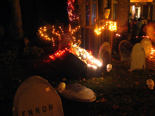 Ну не могу я с умилением смотреть на все эти черепа, оторванные руки, кровавые тела, монстров и могильники.31 октября сотрудники некоторых офисов переодеваются в страшные костюмы, все шутят, но больше конечно пугают друг друга. В этот вечер молодежь собирается на тематические вечеринки, многие семьями устраивают костюмированные праздники с конкурсами, весельем.