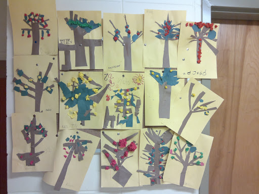 Вот ее аппликация из школы слева вверху (она самая младшая в классе)