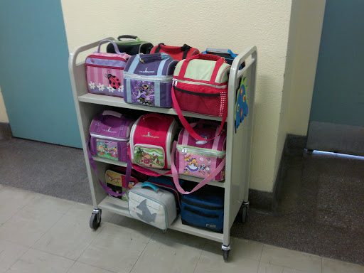 Первое отличие от школы, где учатся Артур и Карина- ланчбоксы стоят в коридоре.