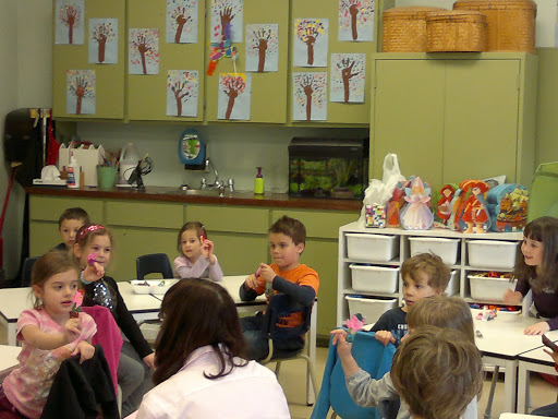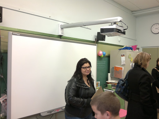 Очень скоро к нам вышла директриса, держа за руку хорошенькую девчушку лет пяти. Представилась, представила девчушку- это оказалась ее дочка, потом поприветствовала нас всех и пожелала приятной экскурсии по школе.