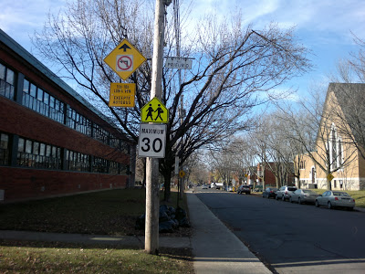 Нарушение скоростного режима в школьной зоне безжалостно карается большими штрафами. Знаки, ограничивающие скорость, расположены так, что не заметить их просто невозможно. А для тех, кто недостаточно проснулся- они дублируются несколько раз.