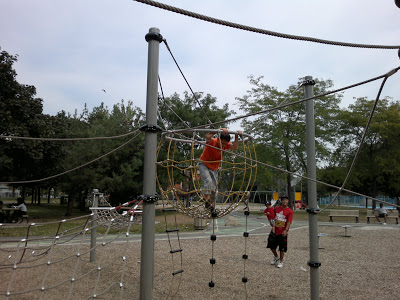 Первое, что бросилось в глаза по приезду в Монреаль, это и размер детских площадок и их разделение по возрасту: одна часть для 0-5 лет, вторая для 6-12 лет. Целиком и полностью согласна, что аттракционы для трехлеток или десятилеток должны быть разными по уровню сложности и наполнению. Малышня еще учится управлять собой, координировать движения, а ребятам повзрослее надо выпускать пар и преодолевать препятствия. Малыши любят качаться на качелях, съезжать по десятку раз с горки, ковыряться с лопаточками и ведерками в песке, а школьникам подавай турники, скалолазание, и лабиринты посложнее.