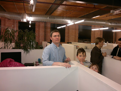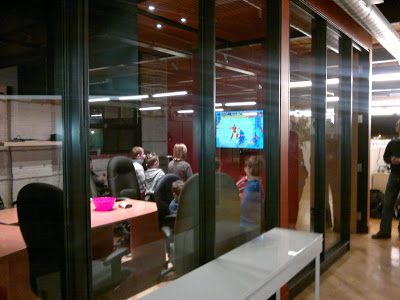 Офис, и так весьма доброжелательно-домашний внешне, стал тут же походить на лабиринт на детской площадке. Пока на кухне резались пироги, кто-то догадался в одном из залов для переговоров включить компьютерные игры, что тут же как магнитом притянуло туда большинство ребятишек, и как-то сразу стало тише))).
