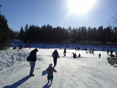 Небольшие колебания были лишь о месте прогулки- то ли в Jean-Drapeau поехать, то ли еще куда. Но против первого варианта было все- и ехать далеко и долго, и дорого там все, но что самое главное- мы терпеть не можем столпотворения людей, а в Жан Драпо было полгорода. Поэтому, взяв санки, мы поехали в свой любимый Лаваль.