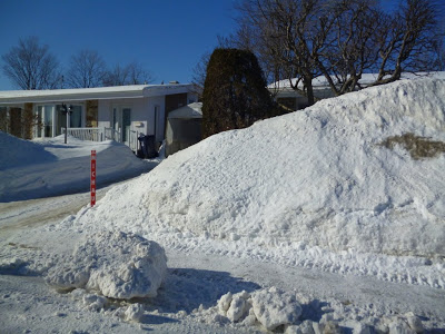 Мы были просто поражены количеством снега в жилой зоне Лаваля возле парка. И никак не можем понять- то ли его там действительно выпало больше, чем в Монреале (а от нашего дома это всего пять км) то ли его так «своеобразно» убирают скидывая прямо на газон у дома. Оно, конечно, для травки хорошо, но из окна же совершенно ничего не видно! 🙂