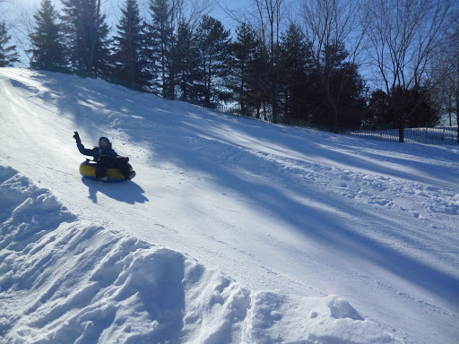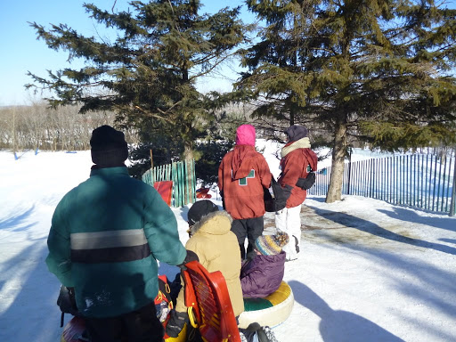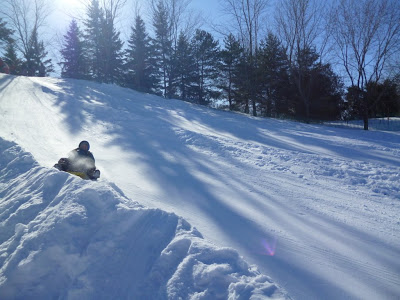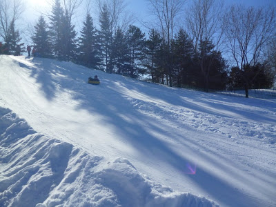 Зимой мы еще никогда его не видели и поэтому было очень интересно сравнить летний и зимний пейзажи. По визгу и хохоту мы сразу определили где именно катаются с горки и направились прямо туда.