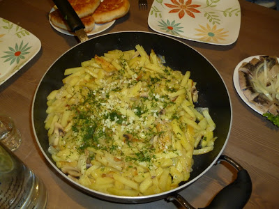 «Марат,- говорю, -мне что-то так сильно хочется жареной картошки!» Он не возражал, а даже помог в ее приготовлении. Он как-то умеет уловить момент, когда и корочка есть, а внутри картошечка мягкая. Потом пришла идея добавить в картошку грибы, потом я достала и почистила селедку, потом на столе появились огурчики и пирожки с картошкой, ну и венцом банкета стала бутылка «Абсолюта» и мы со смехом засервировали стол в стиле «беззаботных счастливых студенческих времен»- когда едят прямо со сковородки, на столе без скатерти, много шутят, смеются, курят и поют под гитару.