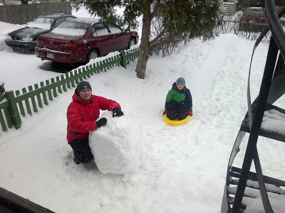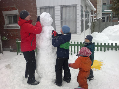 Потом мы сообразили, что в этом сезоне мы катались на коньках, катались на санках, но еще ни разу не лепили снеговика. И решили не терять ни минуты, потому как снег сегодня выпал просто идеальный для лепки!
