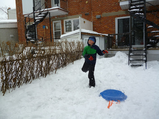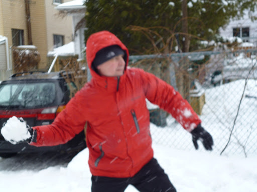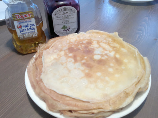 И хоть в окно, выходящее на парадное крыльцо, смотреть не так весело (из него видно нашу машину, которая постепенно опять тонет под снежным покровом), зато вид на задний двор завораживал. Снег сегодня был крупный, хлопьями, падал тихо и красиво. Ветра не было, температура воздуха всего -2, то есть все просто так и звало нас на улицу.Ну мы были бы не мы, если бы не подкрепились перед прогулкой горячими блинчиками