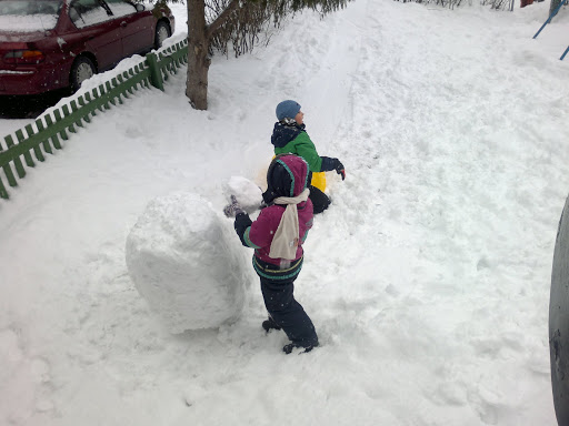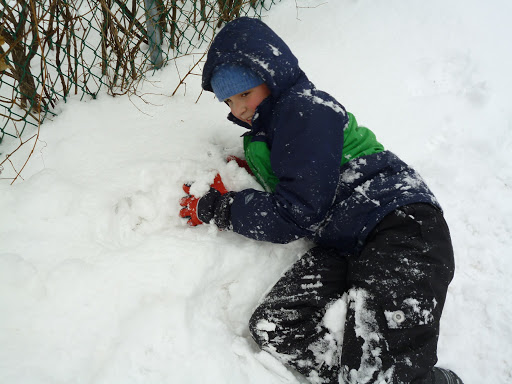 Потом мы сообразили, что в этом сезоне мы катались на коньках, катались на санках, но еще ни разу не лепили снеговика. И решили не терять ни минуты, потому как снег сегодня выпал просто идеальный для лепки!