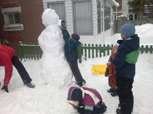 Когда снеговик уже красовался во дворе, заходить домой нам совсем не хотелось. Поэтому сначала детвора стала валяться в снегу,