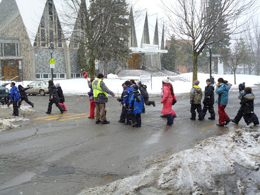 Моя красная лыжная куртка заменяла мне табличку «СТОП» в руках и распахнув объятья, я становилась такой буквой Т на проезжей части, и была неким живым щитом между переходящими дорогу детками и готовящимися к повороту автомобилями. Обошлось без жертв 🙂