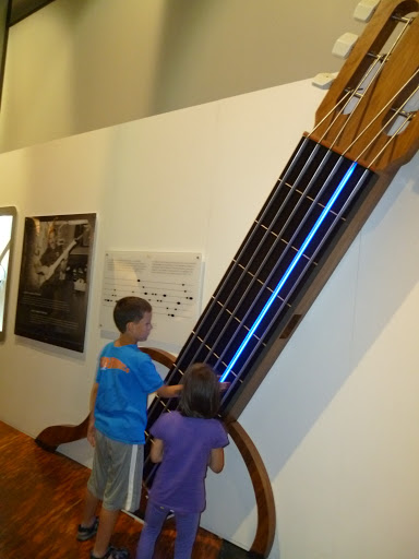 | При прикосновении к струнам, они не только загораются, но и издают звук как на электрогитаре. |