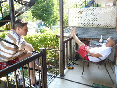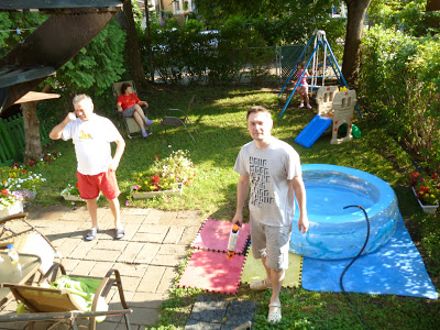 А еще в первые дни августа (которые были и первыми днями приезда гостей) в Монреале стояла неистовая жара. В определенные часы на балконный пол даже наступить было невозможно, он был раскаленный. Мы спасались дома под кондиционером, а когда солнце уходило из зенита, охлаждались в нашем маленьком бассейне и в тени деревьев.