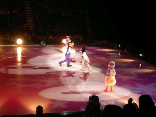 Кроме спектакля на льду, это еще и своеобразная бизнес-индустрия Дисней- в холле по весьма завышенным ценам продавались напитки, футболки, игрушки, сувениры с тематикой мультфильмов.