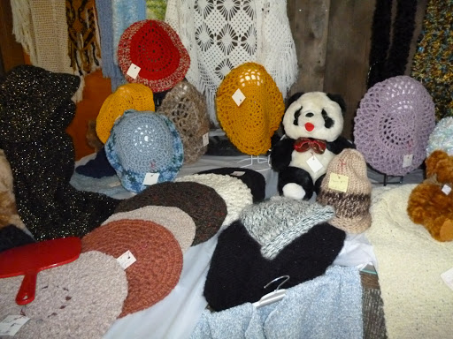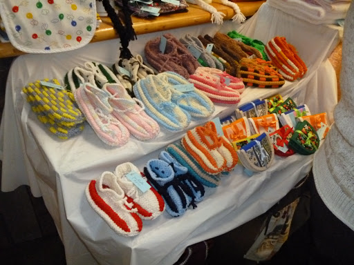 Больше всего умилили квебекские бабушки (их на фото не будет), которые вязали крючком или спицами и там же выставляли на продажу свои работы (беретик- 8 долларов, тапочки-пинетки- 13 долларов). Помню, мы такие вязали на уроках труда :-), а здесь это- изделие РУЧНОЙ работы!!!