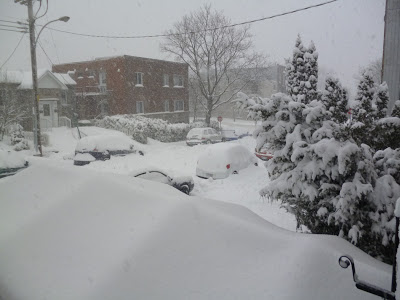 Высота снега за балконе, выходящем на задний двор угрожающе увеличивается на глазах.