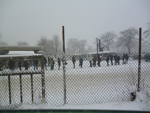 И непогода непогодой, а порядок порядком: даже в снегопад монреальцы стоят в очереди на автобусной остановке, чтобы сесть в автобус: