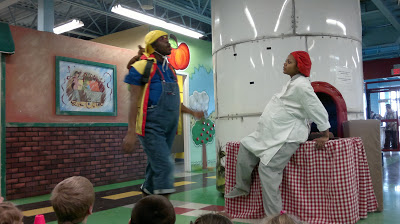 Каждый час проводится небольшой спектакль с участием двух актеров. Каждый раз это новые профессии на новом месте (т.е. актеры играют ситуации, связанные с той или иной профессией).