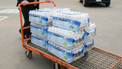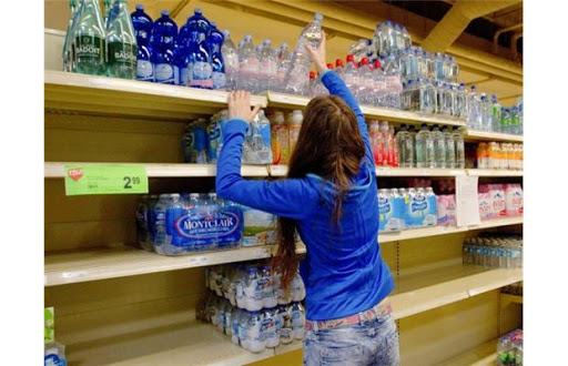 В COSTCO на Marche Central , куда я поехала тоже за водой в 14-45 царил обычный торговый день, единственно, стеллажи с водой были расставлены по всему магазину, а не в одном месте, как обычно. У многих людей в тележках была именно вода, но вместе с другими продуктами. Так что нельзя сказать, что все без памяти скупали только воду. НЕТ.