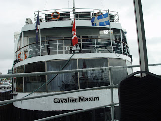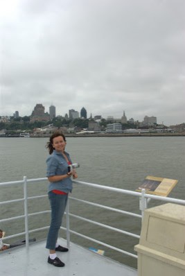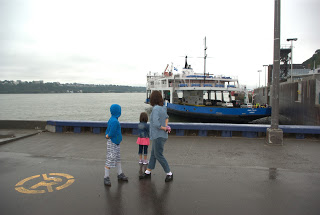 Рядом швартовался паром, который связывает берега городов Квебек и Леви. Естественно, детки смотрели с открытым ртом на заезжающие автомобили, на швартовку парома.