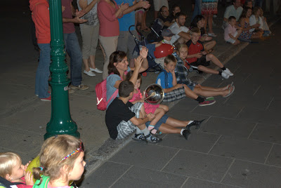 Было по-августовски тепло, даже душно, и мы уселись прямо на асфальт. Чтобы задержать зрителей, артисты не просто выступали, а активно вовлекали кого только можно в свое шоу. Даже мы «попали» 🙂 Как вы помните, в Монреале прошлым летом было неспокойно из-за студенческих волнений. Поэтому, когда ведущий спросил «есть ли кто из Монреаля?», и мы подняли руки (причем остальные или не признались или в тот вечер наша семья действительно была единственной), нам торжественно вручили под всеобщий хохот железную миску с поварешкой, чтобы мы в определенный момент в нее отчаянно колотили.
