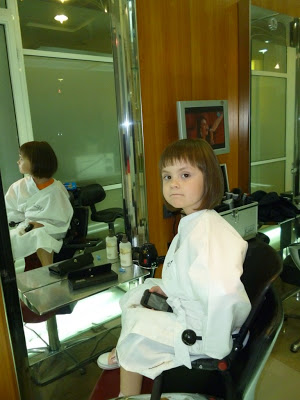 И это только на первый взгляд обычное Каре. Чтобы Каринка не делала, как бы она не бегала и не вертела головой- волосы сами собой ложились идеально, волосок к волоску. И отрастали в идеальном виде. Больше такой стрижки ей не делали никогда. (просто через полтора месяца мы улетели в Монреаль, а все случаи в Монреале — это жалкое подобие качественной стрижки, хотя и салоны разные и мастера разные- от русско до франкоязычных)
