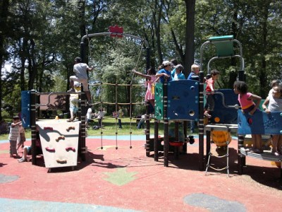 А потом осталось свободное время и дети минут тридцать резвились на площадках в парке, пока не приехали за нами автобусы.