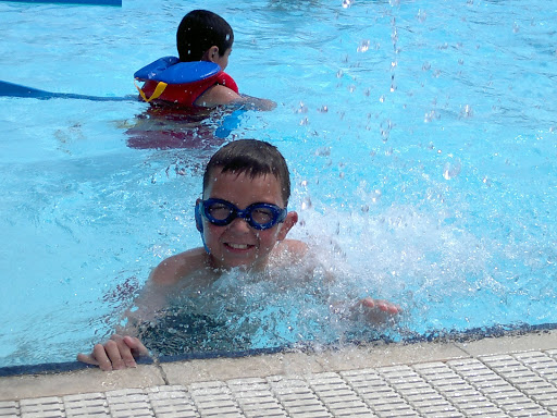 Каково же было мое изумление, когда в воде оказалось теплее, чем снаружи! 🙂 Ура! Бассейн оказался с подогревом. Мы в прошлом году там не были ни разу, так что это стало приятным открытием. Сам бассейн еще чистый-чистый-пречистый, в начале сезона,  и вода без единого листика, сучка или пушинки.