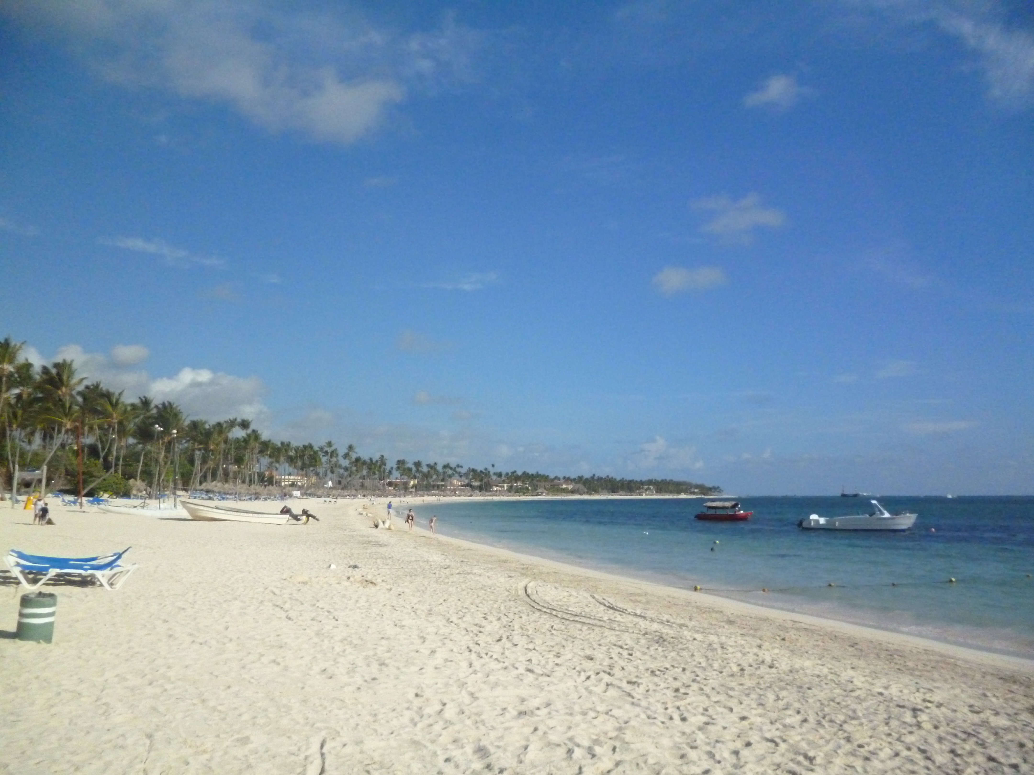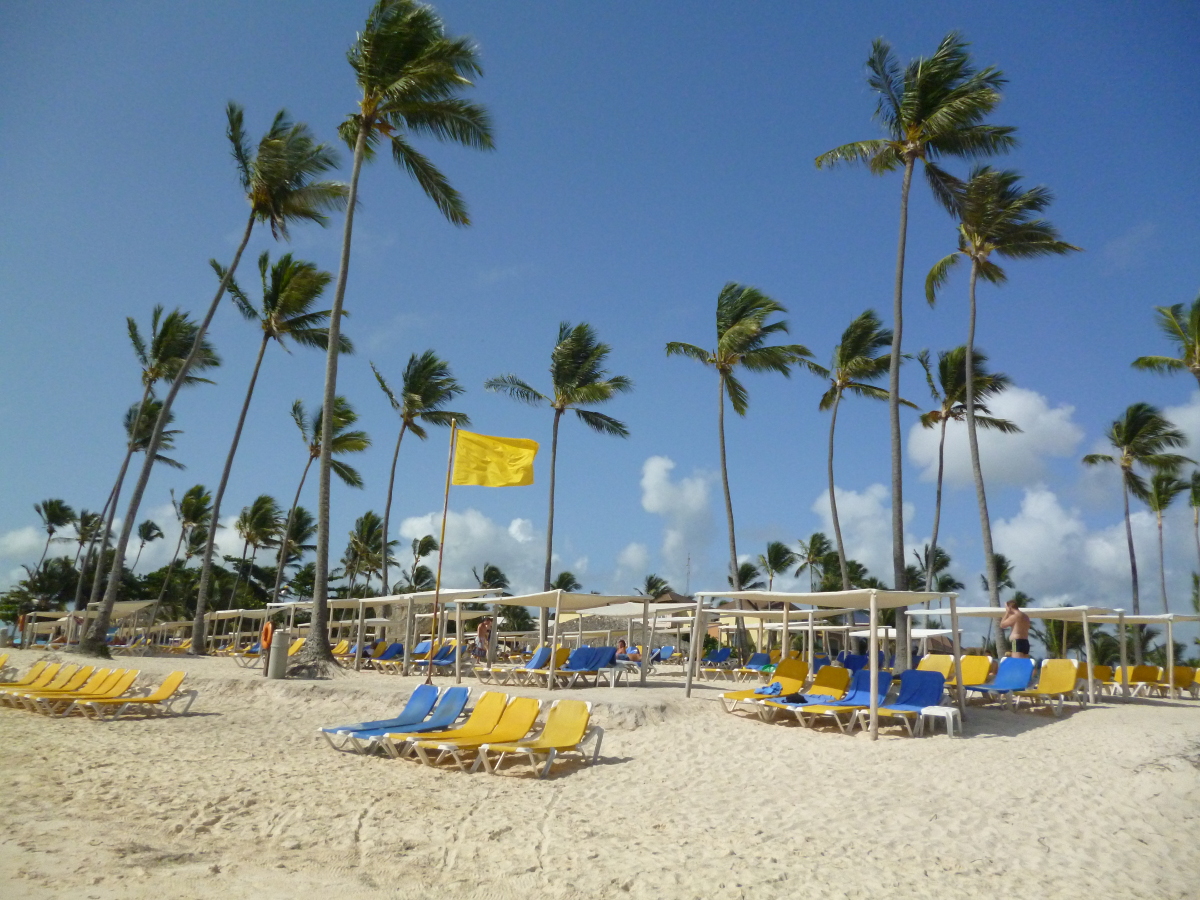 Еще в рассказах об отдыхе, мне хочется развеять миф о том, что только наши соотечественники с 7 утра занимают полотенцами лежаки. Во-первых, «наших» в Доминикане в этот раз было немного, и большинство из них были «наши» из Канады и США 🙂 Так вот, все лежаки с утра ВОЗЛЕ БАССЕЙНА заняты именно иностранцами! Полотенцами, книгами, кремами для загара. И вообще, как оказалось, заграничные товарищи не сильно жалуют океан, предпочитая весь день плескаться в бассейне. На пляже свободных лежаков всегда было много в течение дня в обоих отелях, да и повсему побережью (мы прогуливались по берегу и прошли несколько «чужих» отелей- нигде не наблюдался дефицит лежаков). Вот «чужой пляж»- тоже пустой.