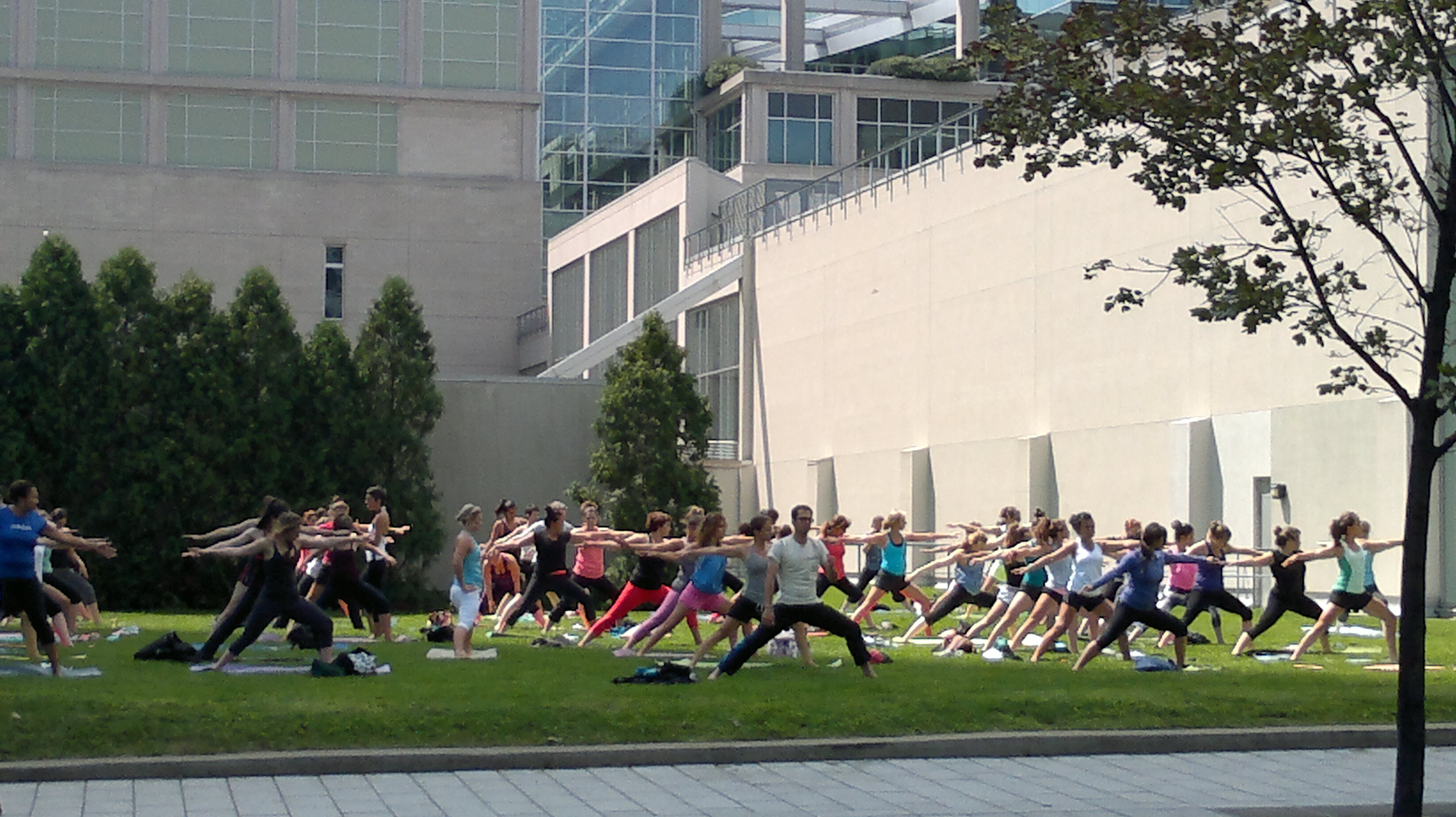 Зато когда я сдала все необходимые документы, на обратном пути с удовольствием прошлась пешком немного по даун тауну. Там совершенно иная атмосфера, чем в нашем «домашнем одноэтажном районе» 🙂 .На площади Виктория даже шло занятие йогой прямо на лужайке вдоль проезжей части. Причем, было там не менее пятидесяти человек в 11-50 рабочего дня! 080720133792