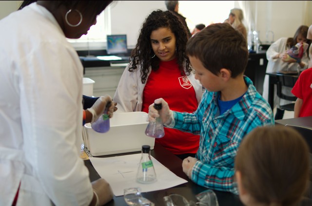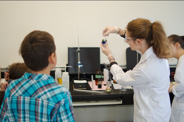 Но самое интересное было этажами выше- кабинеты химии и физики, где разрешали потрогать, пощупать, поучаствовать в опытах.